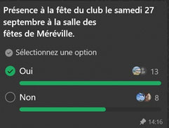 Pensez à vous positionner quant au sondage adressé sur notre WhatsApp, le nombre de participants est important à connaître, il nous permet d'ajuster au mieux les dépenses pour répondre au mieux au nombre de présents et surtout nous évitons le gaspillage c'est encore mieux ;o).